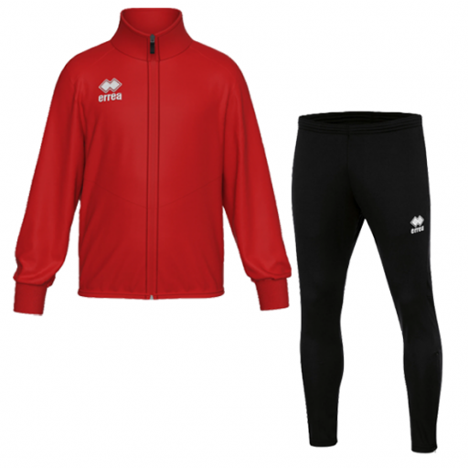 Rode trainingsjas + zwarte trainingsbroek
