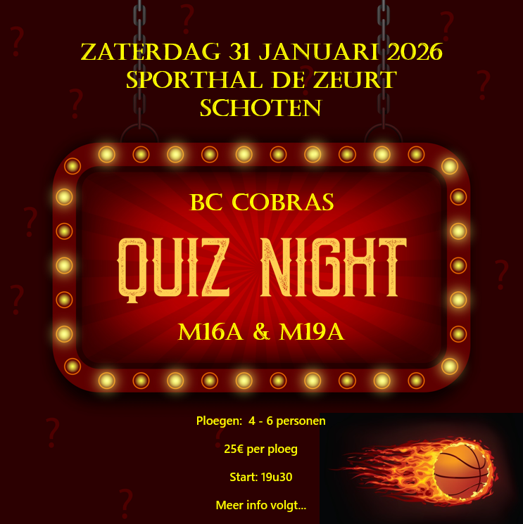 Inschrijvingsformulier Quiz BC Cobras - zaterdag 31 januari 2026.