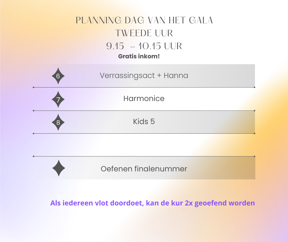 Heeft u tickets voor de middagvoorstelling en wilt u 's avonds de show nogmaals zien? U kunt dan een ticket voor de avondvoorstelling aankopen. Na aankoop krijgt u wederom het juiste polsbandje met de juiste kleur. Tussen de twee voorstellingen vinden controles plaats.